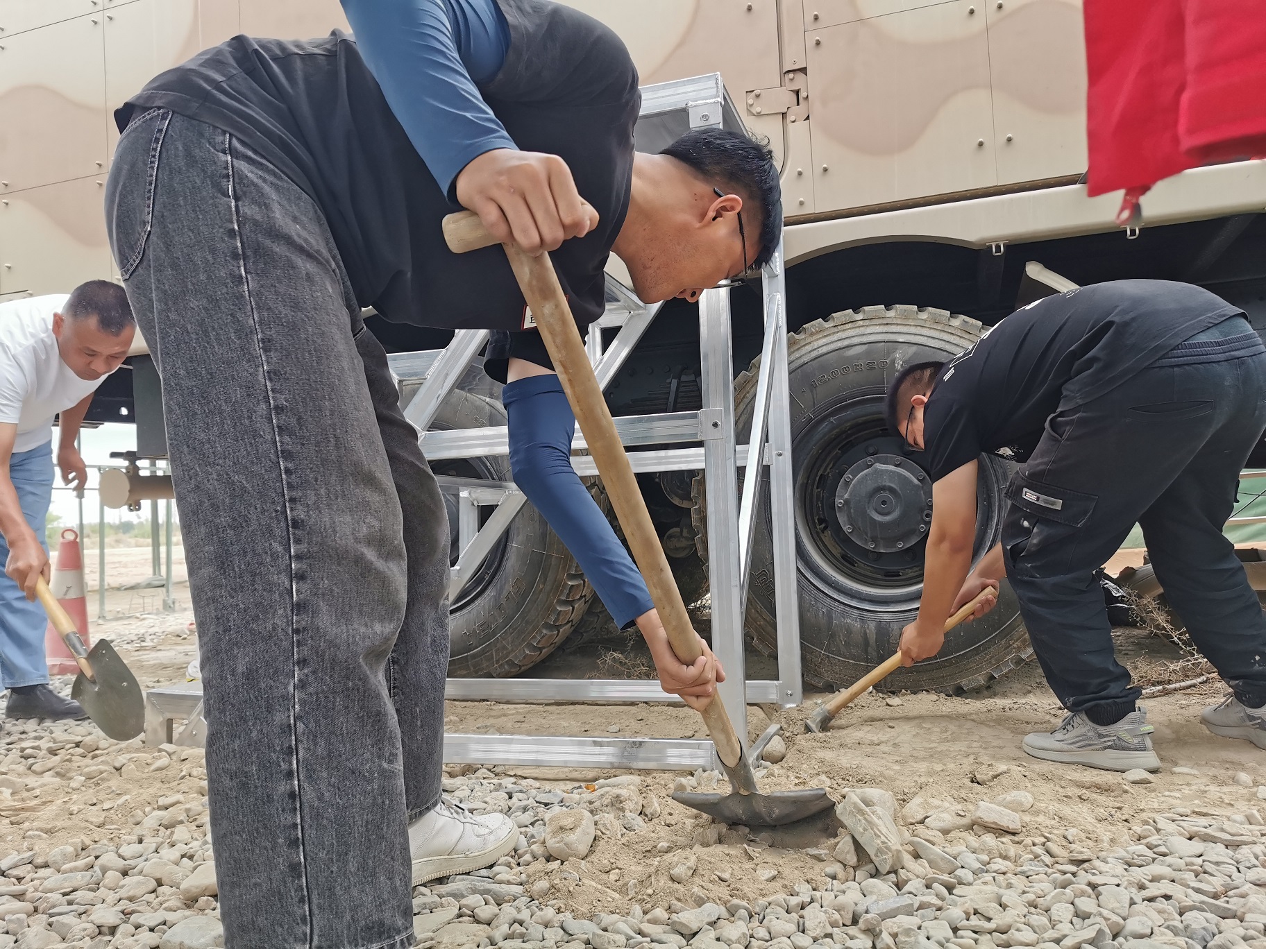 在所有行动中,年过五旬的王队总是冲在第一个,几乎是清一色90后的队员们哪肯落于人后,个个干起活来皆是拼尽全力。年长些的朱工感叹:“年轻人就是生龙活虎啊。”话虽如此,不论是架设信号天线,还是在修路挖渠时,他忙碌的身影都和年轻人相汇在一起。