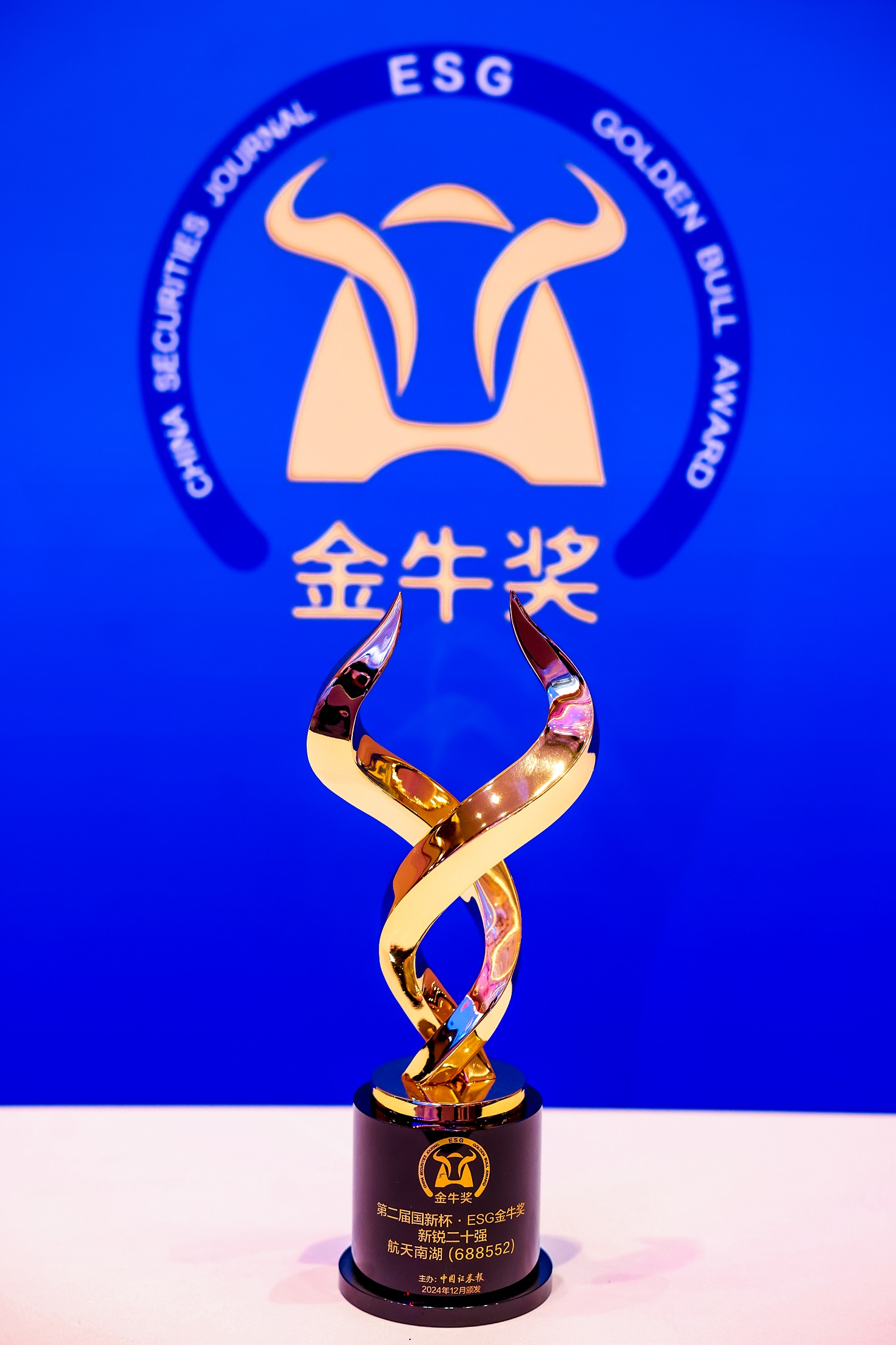 近日,由中国证券报和中国国新控股有限责任公司联合评选出第二届“国新杯·ESG金牛奖”获奖名单,航天南湖凭借上市以来,在ESG(环境、社会和公司治理)工作方面的优异表现,荣获第二届“国新杯·ESG金牛奖新锐二十强”。2024年12月6日,公司党委书记、董事长罗辉华出席颁奖典礼。